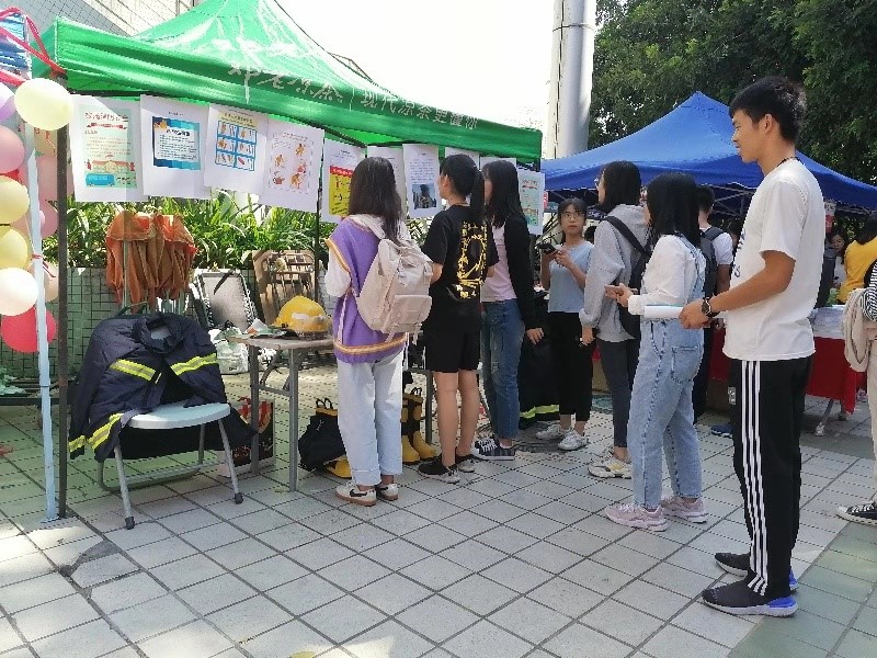 “校园宿舍用电安全规章”通过展示校园宿舍用电安全规章,让同学们对宿舍用电的“可为”与“不可为”有更清晰的认识,给同学们防范校园火灾实践提供理论指导。“重大火灾事故”例举了近年来发生的两例重大火灾事故,两例火灾事故不仅造成了巨大的经济损失,而且造成程度不一的人员伤亡。客观的事故叙述搭配事故现场图片,让同学们认识到火灾的无情及其带来的惨烈后果,并树立了危机意识。“高校宿舍安全事故”选取了近年来三例重大火灾,精简的文字叙述配上事故现场的图片,旨在让同学们加强校园防火意识,在思想上有所提防,在实践中有所防范。“消防事故逃生步骤和灭火器使用步骤”以图片搭配简短文字说明的形式展示了泡沫灭火器、干粉灭火器和二氧化碳灭火器的使用方法,图文并茂有助于同学们掌握灭火器的使用方法。在消防事故逃生方面,采取生动的流程图展示逃生基本步骤,让同学们面对灾情时能冷静处理,安全逃生。此外,活动还展示了灭火器、防毒面具、消防帽、消防服、应急灯和消防靴等实物,搭配消防卡通人物和消防安全标语增强宣传效果。同学们积极阅读消防宣传资料,并通过接触消防器械进一步了解消防安全。