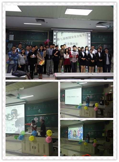 2015年12月2日晚7点,由学校保卫处和校团委主办,校学生会安全保卫部承办,各二级学院学生会协办的第七届校园安全文化节之安全微电影大赛总决赛在综合楼305隆重开场。本次安全微电影大赛除了受到广大同学的热烈欢迎外,广东工业大学安全协会的成员也专程来我校交流经验。学校保卫处,大众物业安全管理部,校学生会和广东工业大学安全协会的老师同学担任了此次活动的评委。