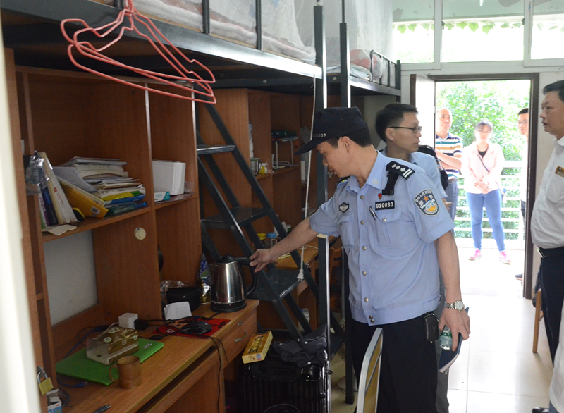 4月28日上午,保卫处会同学生处、后勤集团、社区民警、大众物业公司、学生校长助理和校学生会安保部,对大学城校区的学生宿舍和药科楼危险品仓库进行了安全检查。