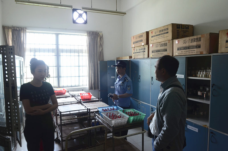 根据上级要求,4月上旬各学院已完成对两校区学生宿舍安全情况的自查,今天在学院复查的基础上进行抽查,没有发现管制刀具,没有发现易燃、易爆、剧毒等危险物品,但部分宿舍物品堆放较多,堵塞通道。在对药科楼危险品仓库的检查中发现,里面仍存有没处置的危化品,目前正在加紧整改。